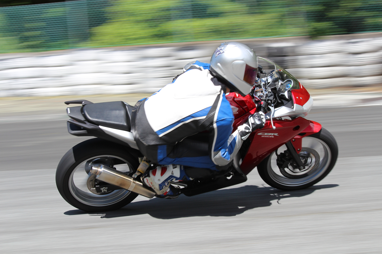 フルフェイス&皮ツナギが必要(サーキットライセンスは不要)タイム計測器も付き。